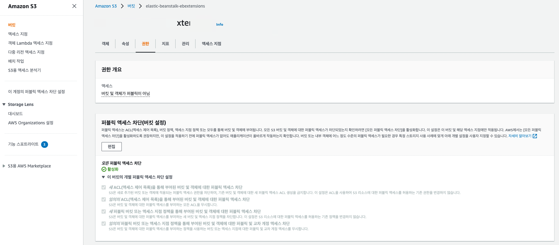 버킷 > 권한 클릭