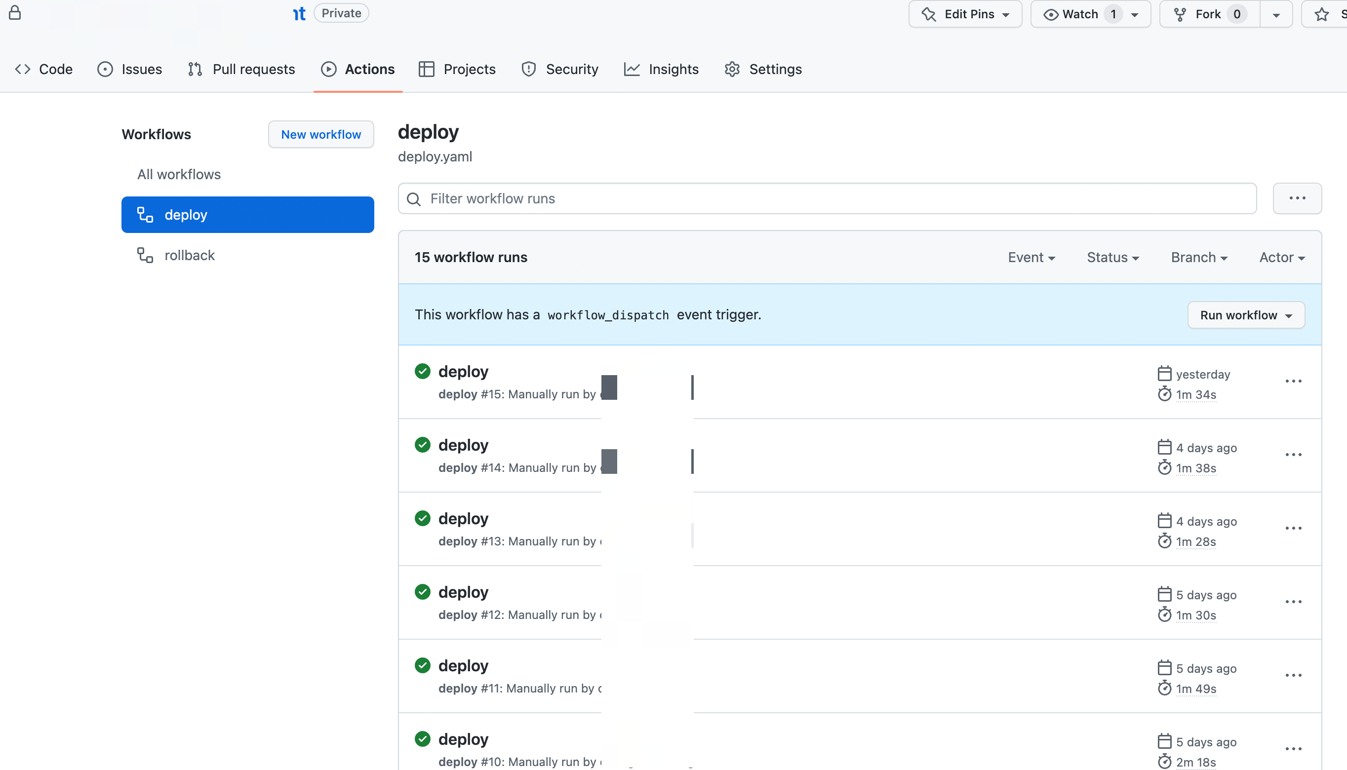 - prod나 rollback하고 싶은 deploy 버전 선택