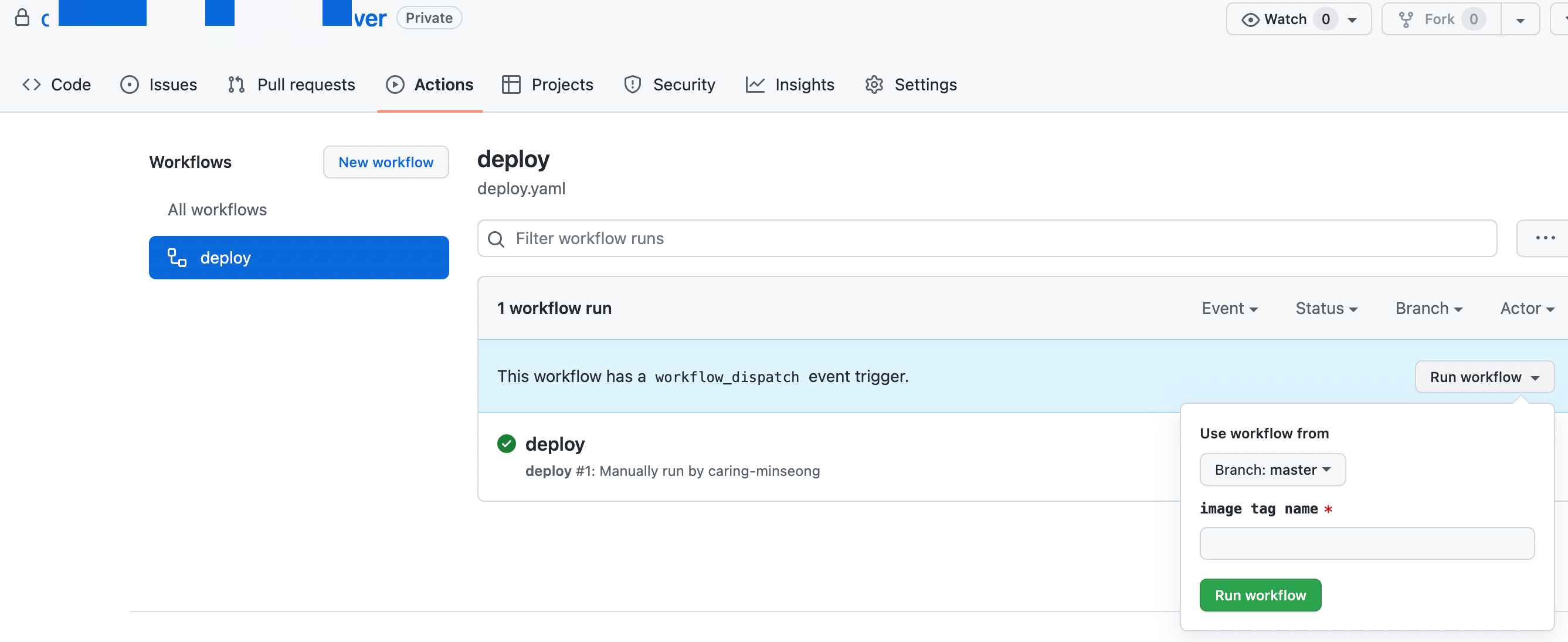 - 해당 workflow의 커밋 해쉬 복사 후 붙여넣기