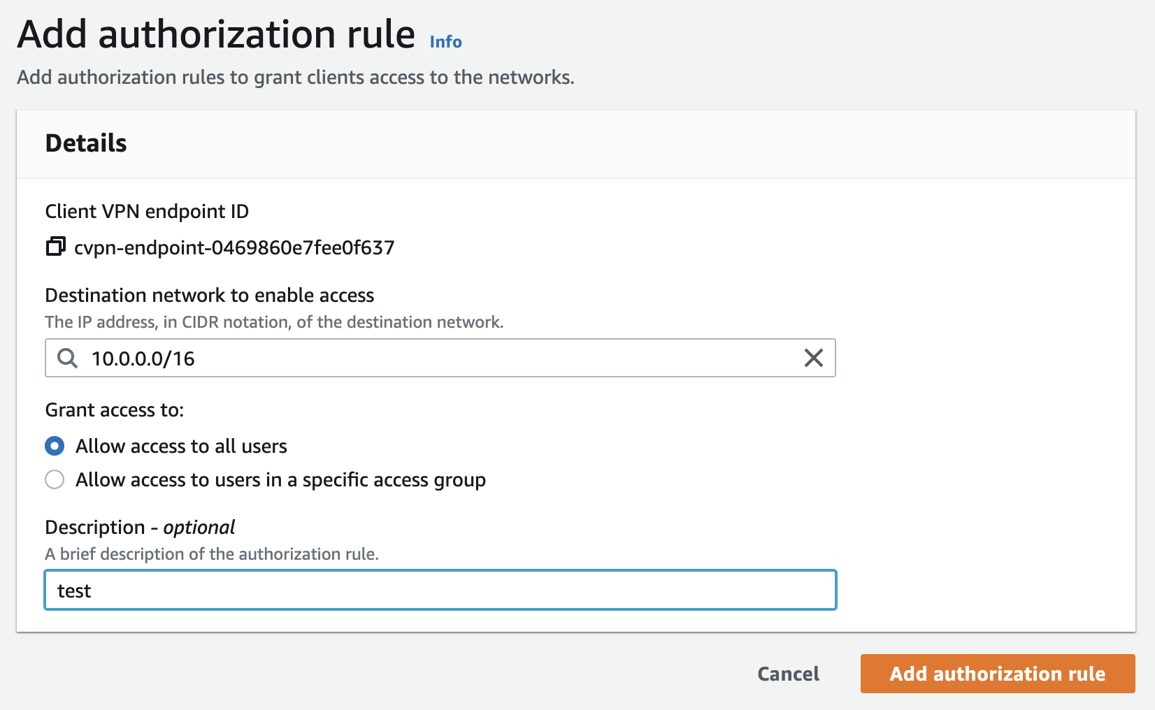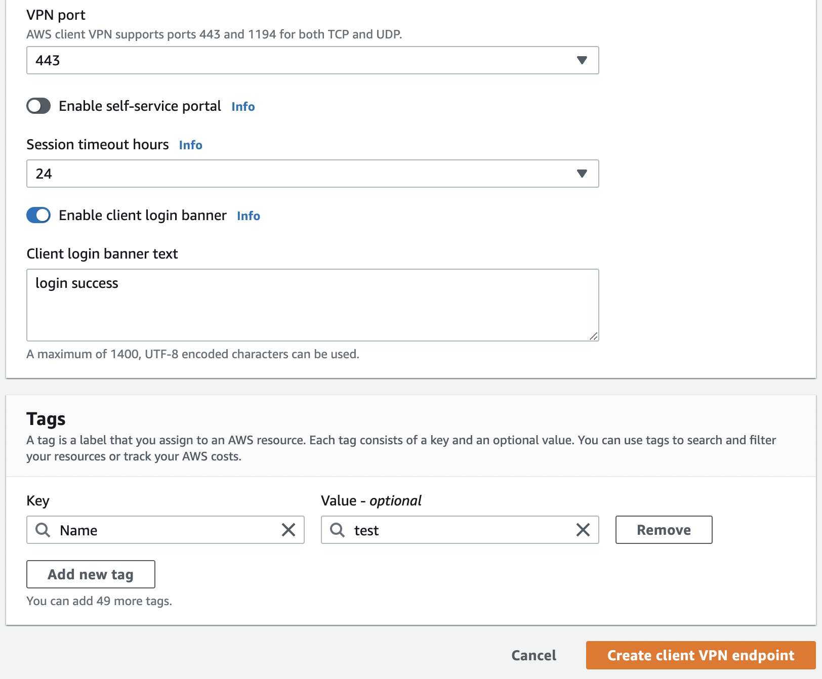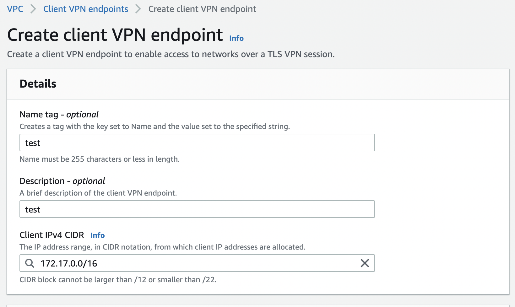 - Client IPv4 CIDR은 VPC의 주소와 겹치면 안된다.