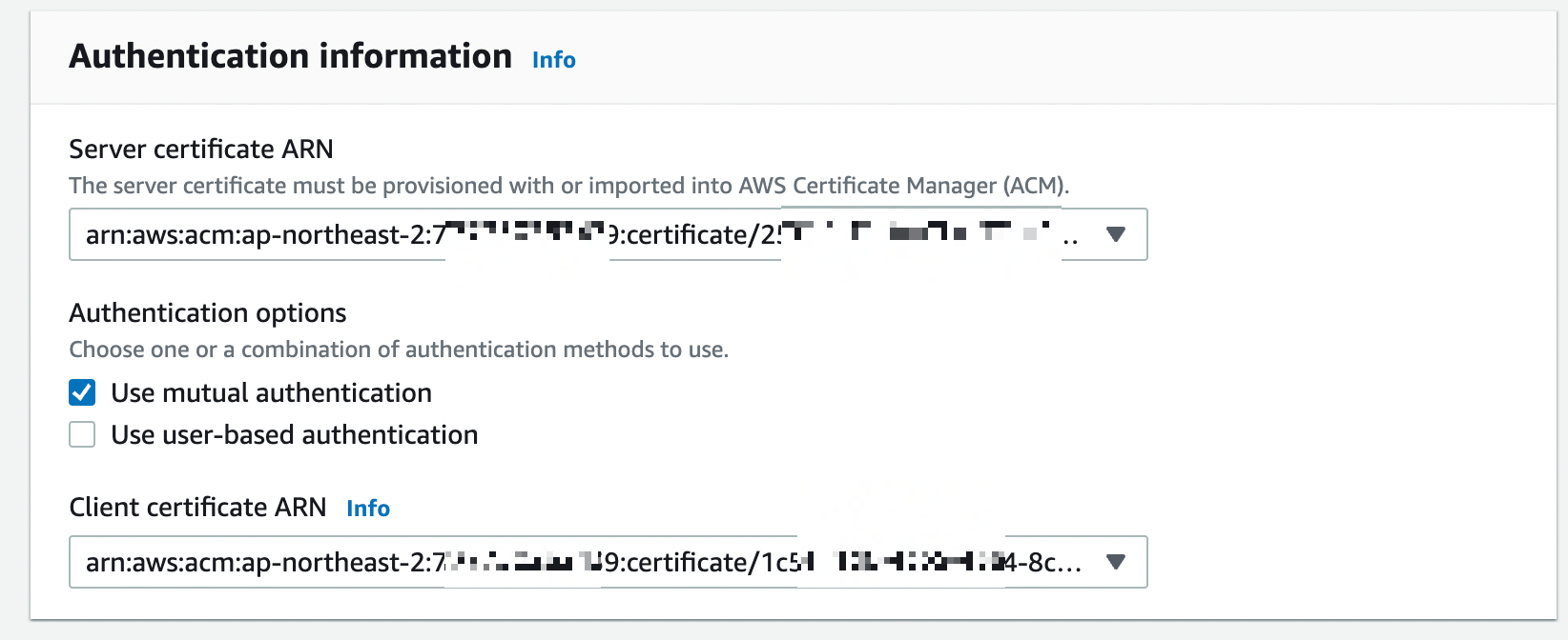 - aws acm import-certificate --certificate fileb://client1.domain.tld.crt --private-key fileb://client1.domain.tld.key --certificate-chain fileb://ca.crt --region ap-northeast-2