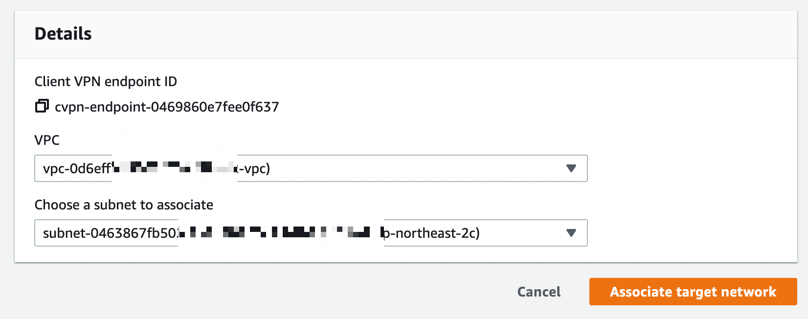 - VPN endpoint 생성 후 target network - vpn과 연결할 subnet을 선택한다.